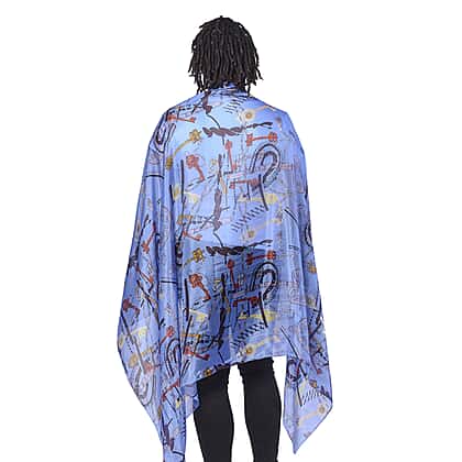 LA MAREY 100% Mulberry Silk Blue and Multicolour Periwinkle Print Scarf (180x110cm)