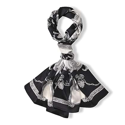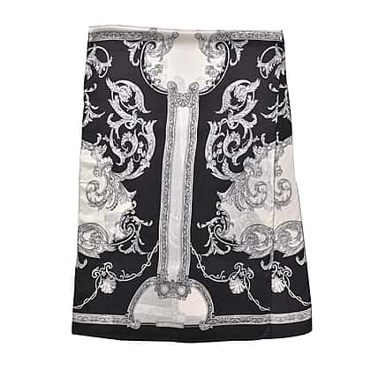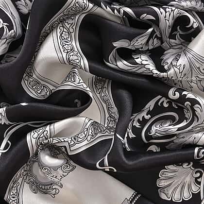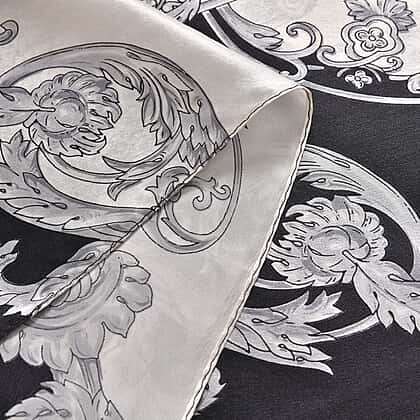 La Marey 100% Mulberry Silk Damask Pattern Scarf (Size 170x53 cm) - Black - White