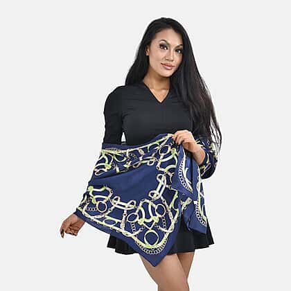 La Marey 100% Mulberry Silk Patterned Scarf (Size 170x52 cm) - Navy & Green