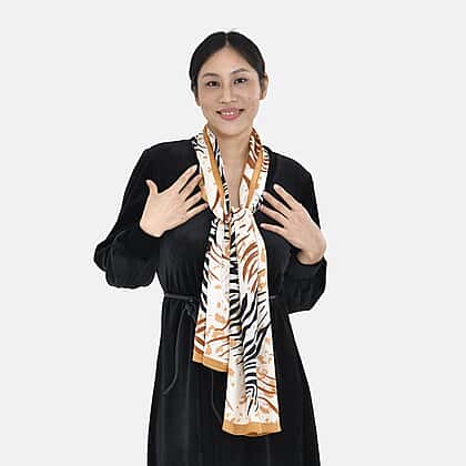 LA MAREY 100% Mulberry Silk Tiger Pattern Scarf (Size 168x55 cm) - Black Gold and Brown