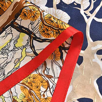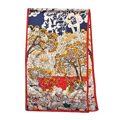 La Marey 100% Mulberry Silk Tree Pattern Scarf (Size 177x53 cm) - Blue - Yellow