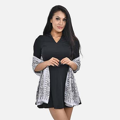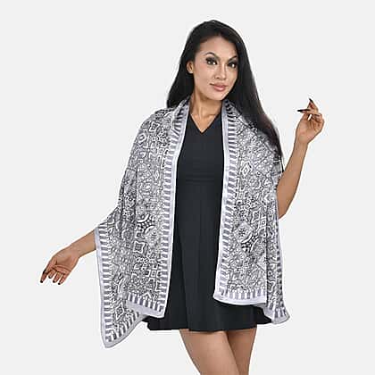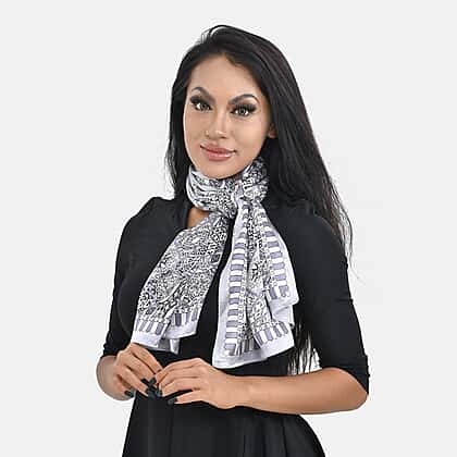 LA MAREY 100% Silk Scarf (Size 167x53cm) - Grey & Black