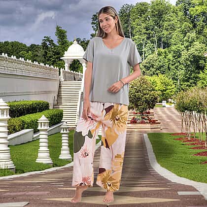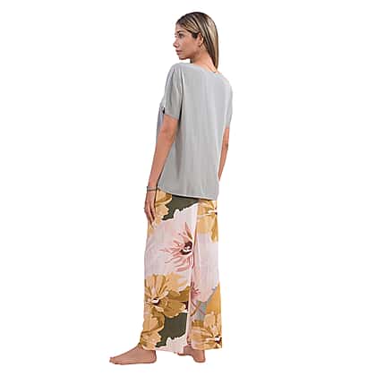 La Marey Viscose Floral Pattern Loungewear Set - Black