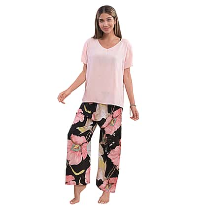 La Marey Viscose Floral Pattern Loungewear Set - Black