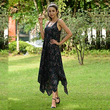 LA MAREY 100% Viscose Floral Pattern Slip Dress - Black and White
