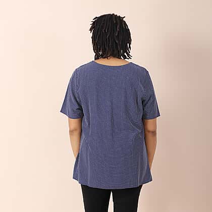 LA MAREY Viscose Floral Pattern Round Neckline Blouse - Black and Blue