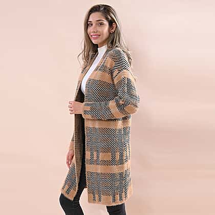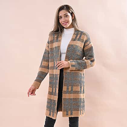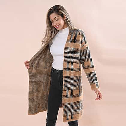 - COLOUR: The camel and black colour combination gives a minimalistic appeal to this sweater cardigan