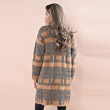 LA MAREY Check Pattern Sweater Cardigan - Camel and Black