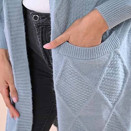 LA MAREY Cable Knit Long Cardigan - Light Blue