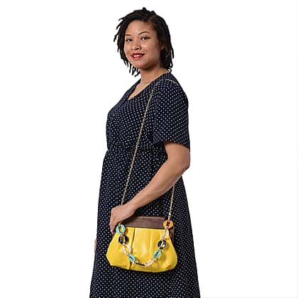 - COLOUR: The bright yellow colour gives an attractive appeal to this clutch bag