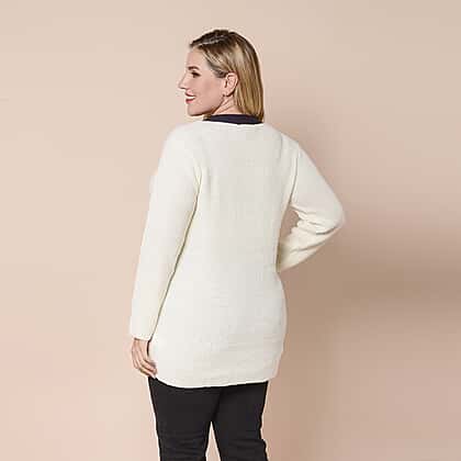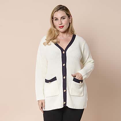• FABRIC: This elegant-looking cardigan in white and black contrast is made of 100% Acrylic fabric that is very warmth and comfy to wear in cold weather