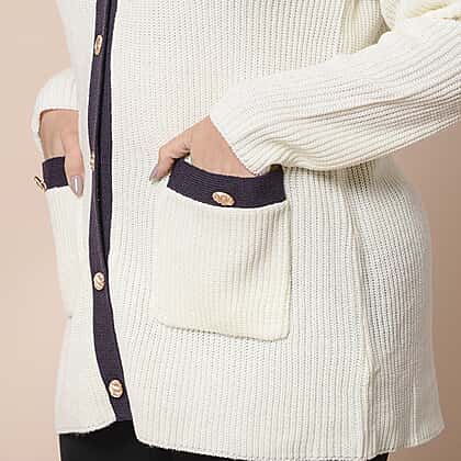 LA MAREY Cream Contrast Cardigan with Golden Buttons