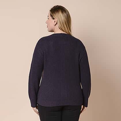 LA MAREY Dark Purple Knit Cardigan with Multi Colour Floral Embriodery (Size: XL, 43)