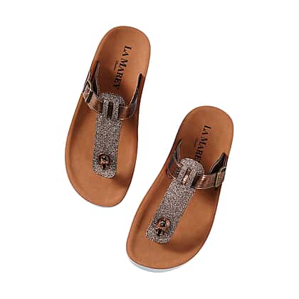 LA MAREY Flat Womens Sandals (Size 5) with Buckle - Bronze