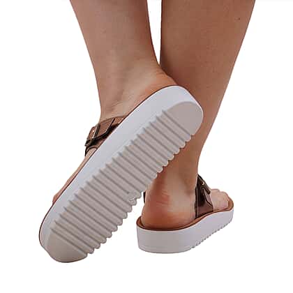 LA MAREY Flat Womens Slippers with Buckle - Bronze