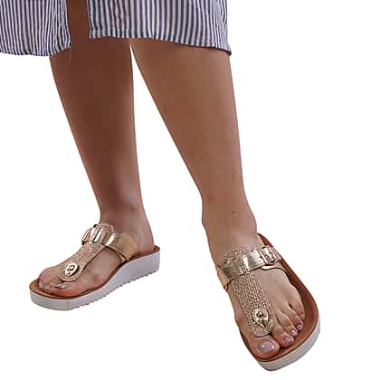• SHINY UPPER: The gold-toned shiny upper gives a dazzling appeal to these sandals