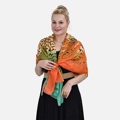 LA MAREY Printed 100% Mulberry Silk Scarf- Green and Orange