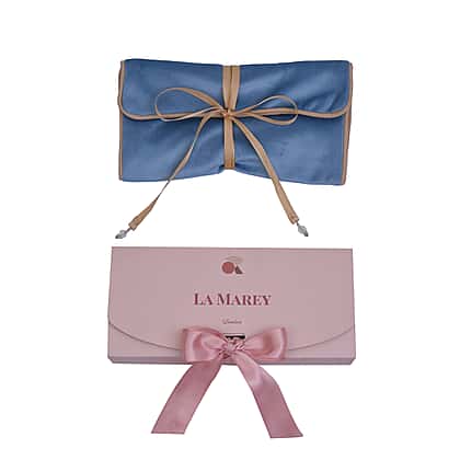 La Marey Foldable Velvet Jewellery Roll Organiser with a Gift Box - Velvet & Blue