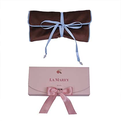 LA MAREY Foldable Velvet Jewellery Roll Organiser with a Gift Box (Unfolded Size 27x20x1 Cm) and (Folded Size 20x10x2 Cm) - Brown