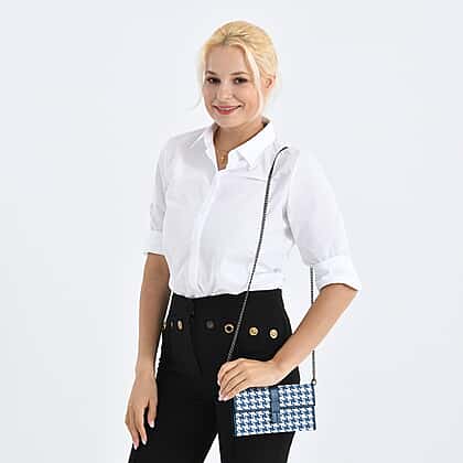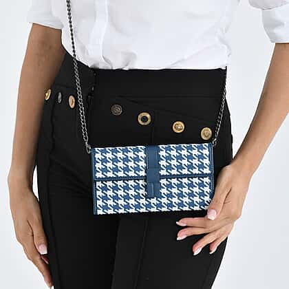 La Marey Genuine Leather Checkered Pattern RFID Crossbody Wallet - Blue