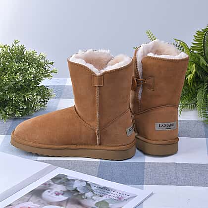 LA MAREY Faux Fur Inside Snow Boots - Light Brown