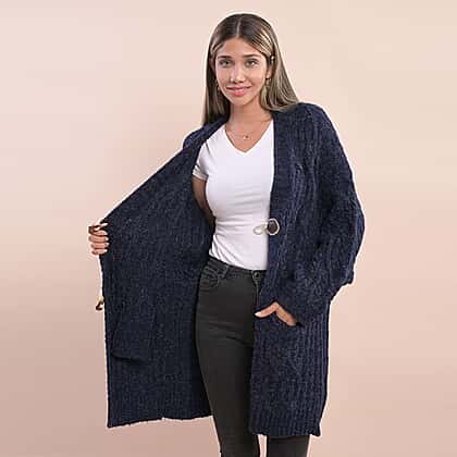LA MAREY Long Sweater Cardigan with Buttons (80x60 Cm) - Navy