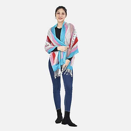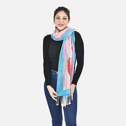 La Marey Merino Wool Ribbon Pattern Scarf (Size 175x65 cm) - Red - Pink