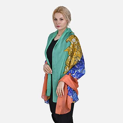 La Marey Mulberry Silk Painted Scarf (Size 110x1 cm) - Green & Yellow