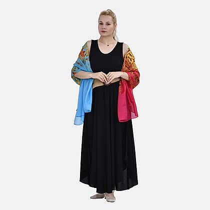 LA MAREY Printed 100% Mulberry Silk Scarf- Blue and Red