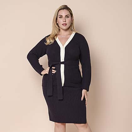 LA MAREY Ribbed Knit Skirt in Dark Plum Colour (Size XXL, 20-24)