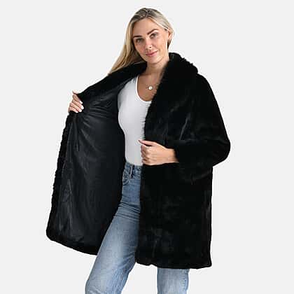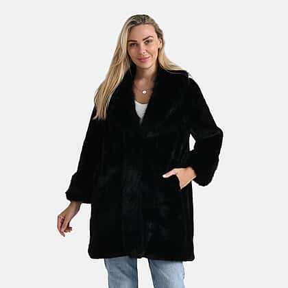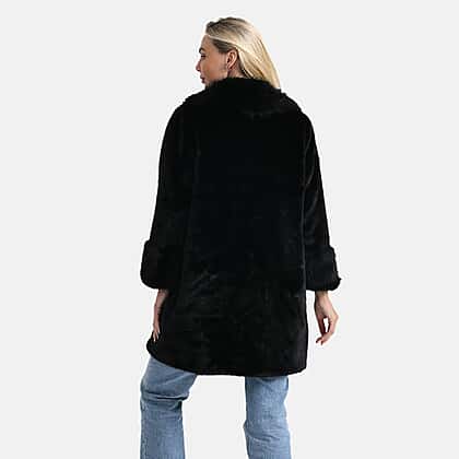 La Marey Signature Faux Fur Longline Coat (Size - S-M) - Black