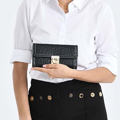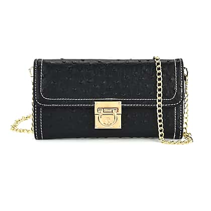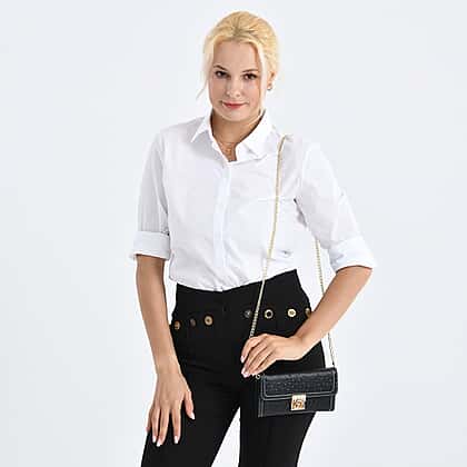 La Marey Signature Genuine Leather Sling Wallet with Built-in RFID with Chain Strap (120 cm) - Black