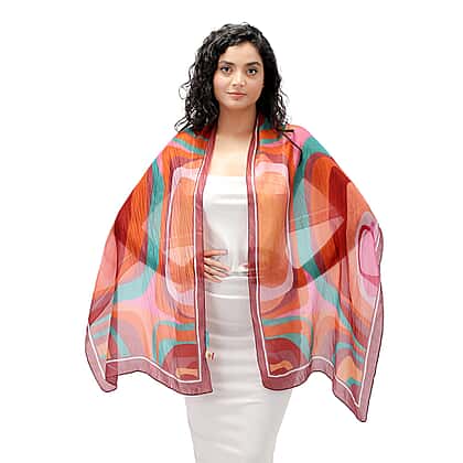 LA-MAREY 100% Silk Abstract Pattern Printed Scarf (Size-180x50cm) - Orange - Multi
