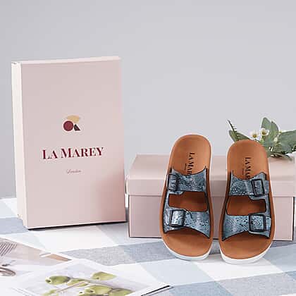 LA MAREY Snake Skin Pattern Two Strap Slip on Sandal (Size 3) - Blue