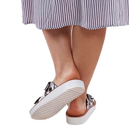 LA MAREY Snake Skin Pattern Two Strap Slip on Sandal (Size 3) - White