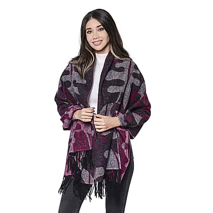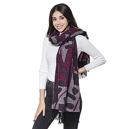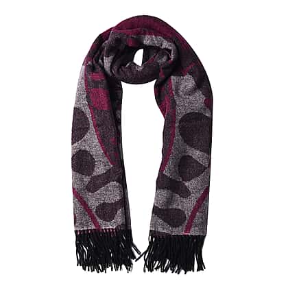 LA MAREY Super Soft 100% Lambswool Jacquard Purple and Grey Abstract Pattern Shawl with Tassels (175x70cm)