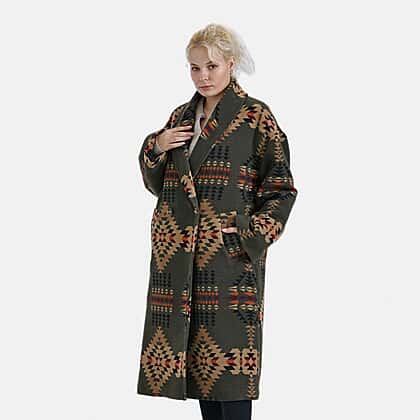 La Marey Tribute Pattern Longline Coat (Size 12 to 14) - Green