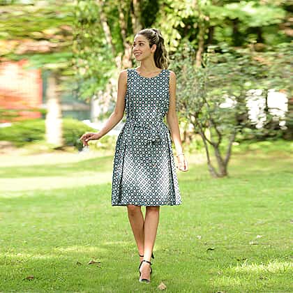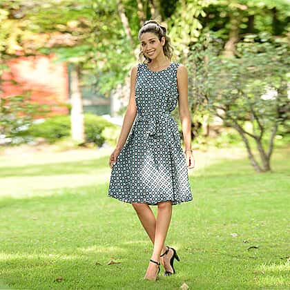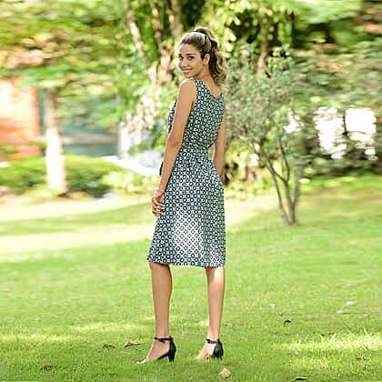 LA MAREY Viscose Striking Geometric Pattern Sleeveless Dress - Teal Green & Multi