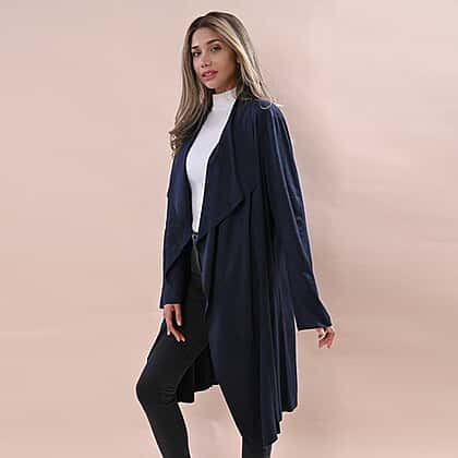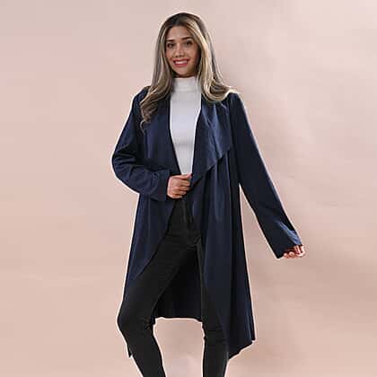 - COLOUR: The eye-catching navy colour gives a striking appeal to this long jacket