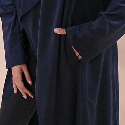 LA MAREY Faux Suede Long Waterfall Open Front Women's Jacket