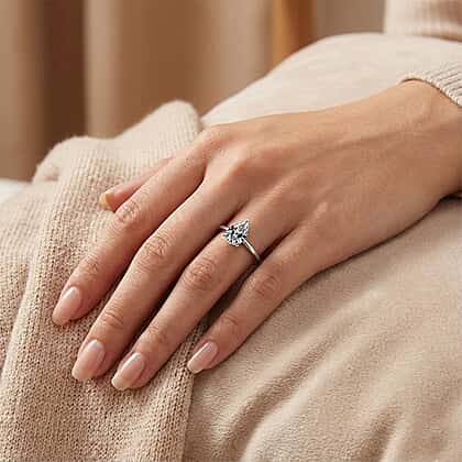 This Luxuriant Pear Cut Lab Grown Diamond ring features a one-carat, teardrop-style sparkling gemstone at the centre. The centre stone is flanked by a three-prong setting that helps give the diamond more visibility. The stone also helps to create an illusion of longer fingers owing to its pointed-tip. The pear-cut diamond is set on a smooth and lustrous shank made with rhodium overlay sterling silver. This solitaire ring makes for a romantic choice and can signify individuality, empowerment, and emotional depth.