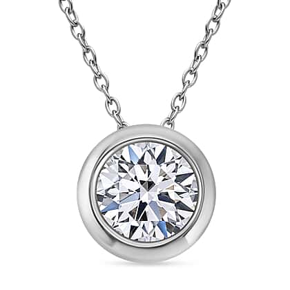 LUXURIANT 1 Ct. Bezel-Set Lab Grown Diamond Solitaire Pendant with Chain (Size 18-20) in Rhodium Overlay Sterling Silver, SGL Certified