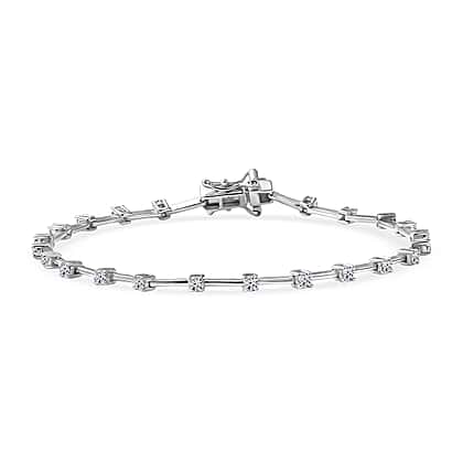 LUXURIANT 1 Ct. Lab Grown Diamond Station Bracelet (Size 7.5) with GB Lock Box in Rhodium Overlay Sterling Silver (SI-GH)