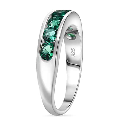 LUXURIANT Lab Grown Emerald Half Eternity Ring in Platinum Overlay Sterling Silver 1.20 Ct.