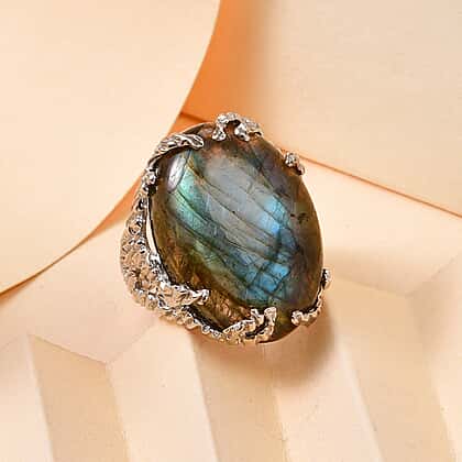 Labradorite Ring in Platinum Overlay Sterling Silver 25.45 Ct.