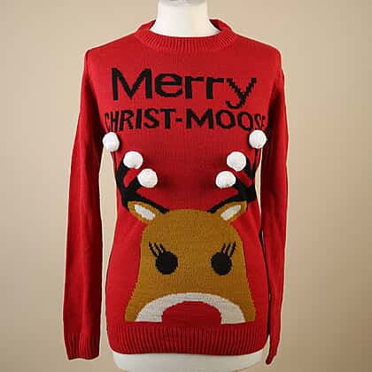 Knitted Sequin Xmas Elf Ladies Jumper (Size S/ 8-10) - Black