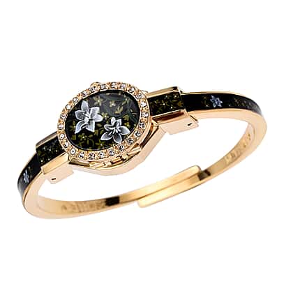 Andre Mouche Swiss Ronda Movement White Floral Pattern18ct Gold Plated Ladies Bangle Watch (Size 7 - 7.5)