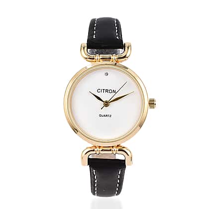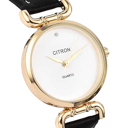 Closeout Offer - Citron Quartz Movement Watch For Women with Silver Sunray Dial & Black Strap