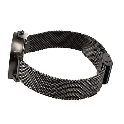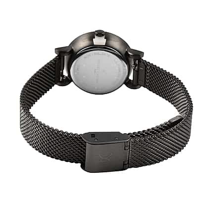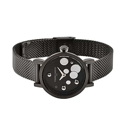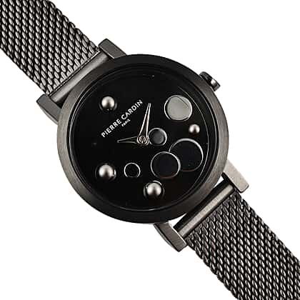Flaunt this all-black statement look of the Pierre Cardin Ladies’ Quartz Watch at any formal event or a party and see heads turn your way. This stately design of this ladies’ watch makes it stand out from the crowd. It has a stainless steel body which is clothed in a black tone. The round black dial is complemented by the black mesh bracelet. The minimalist dial has moon-like celestial orbs juxtaposed against the black background.