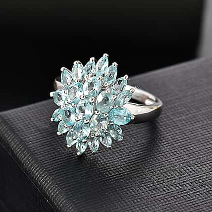 Lagoon Apatite Cluster Ring in Rhodium Overlay Sterling Silver 3.28 Ct.